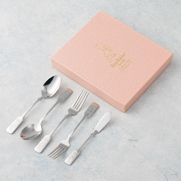 人気キャラクター「ピーターラビット」のカトラリーセットです。柄尻に刻印が入っており、毎日使いたくなる可愛らしさ。パッケージにもキャラクターの世界観を表現しています。