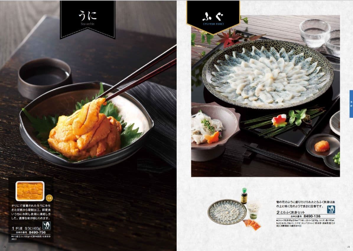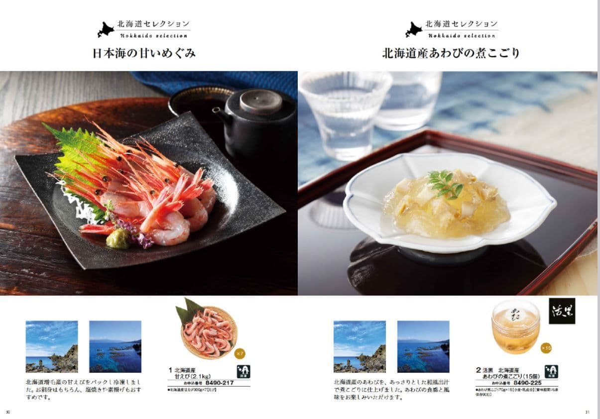 十勝の技ハム詰め合わせ、<ホテルオークラ>スープ・調理缶詰詰合せ、<神戸ハング>但馬牛ローストビーフ、<なだ万>料亭の味詰合せ、<八代目儀兵衛>京ちらしとお供セット、<北海道産>新巻鮭親子セット、<伊勢志摩産>活伊勢海老2尾(天然・生食用)、<まんてんや>手焼 炭火焼 うなぎ蒲焼、とらふぐちり鍋、<熊本味彩牛>モモ焼肉用(350g)、<松阪牛>バラすき焼き用(500g)、手延べそうめん揖保乃糸(特級品)、<イリナ>25種ロールタワーキット5段用
