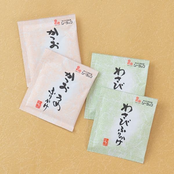焼津産かつお本枯節削り×4・かつおうめふりかけ・わさびふりかけ×各3・ふんわりたまごスープ×1