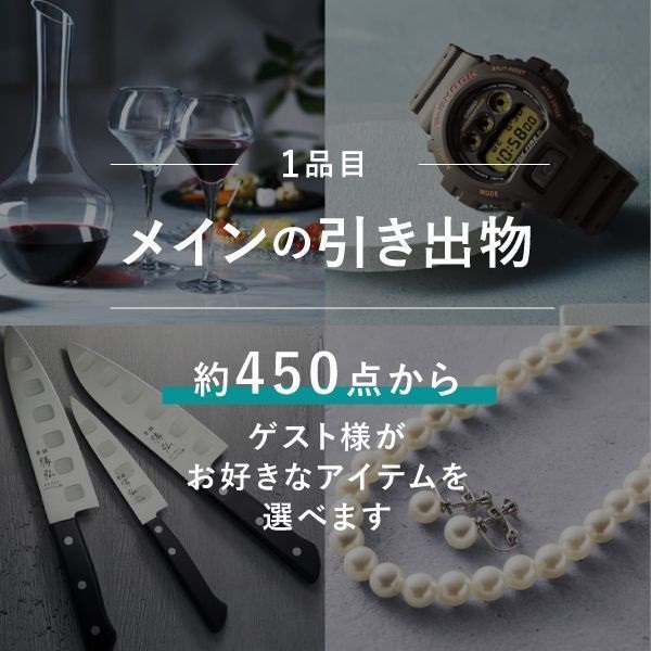 | ギフト内容 | メイン約450点、引菓子約40点、縁起物約50点 |